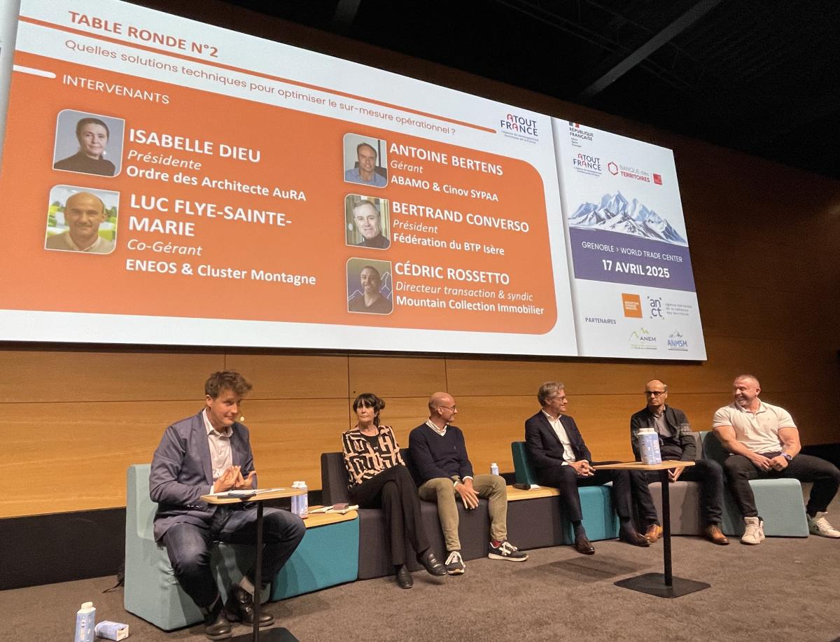 Pour cette seconde table ronde, le sujet évoquait les solutions techniques pour optimiser le sur-mesure opérationnel avec les interventions d'Isabelle Dieu (Architecte DPLG et Présidente de l'ordre des Architectes Auvergne Rhône Alpes), Cédric Rosseto (Directeur - Transaction & Syndic, compagnie des Alpes), Bertrand Converso (Président. Groupe Converso), Luc Flye Sainte-Marie Fondateur, dirigeant Eneos) et Antoine Bertens (Fondateur et gérand d'Abamo).